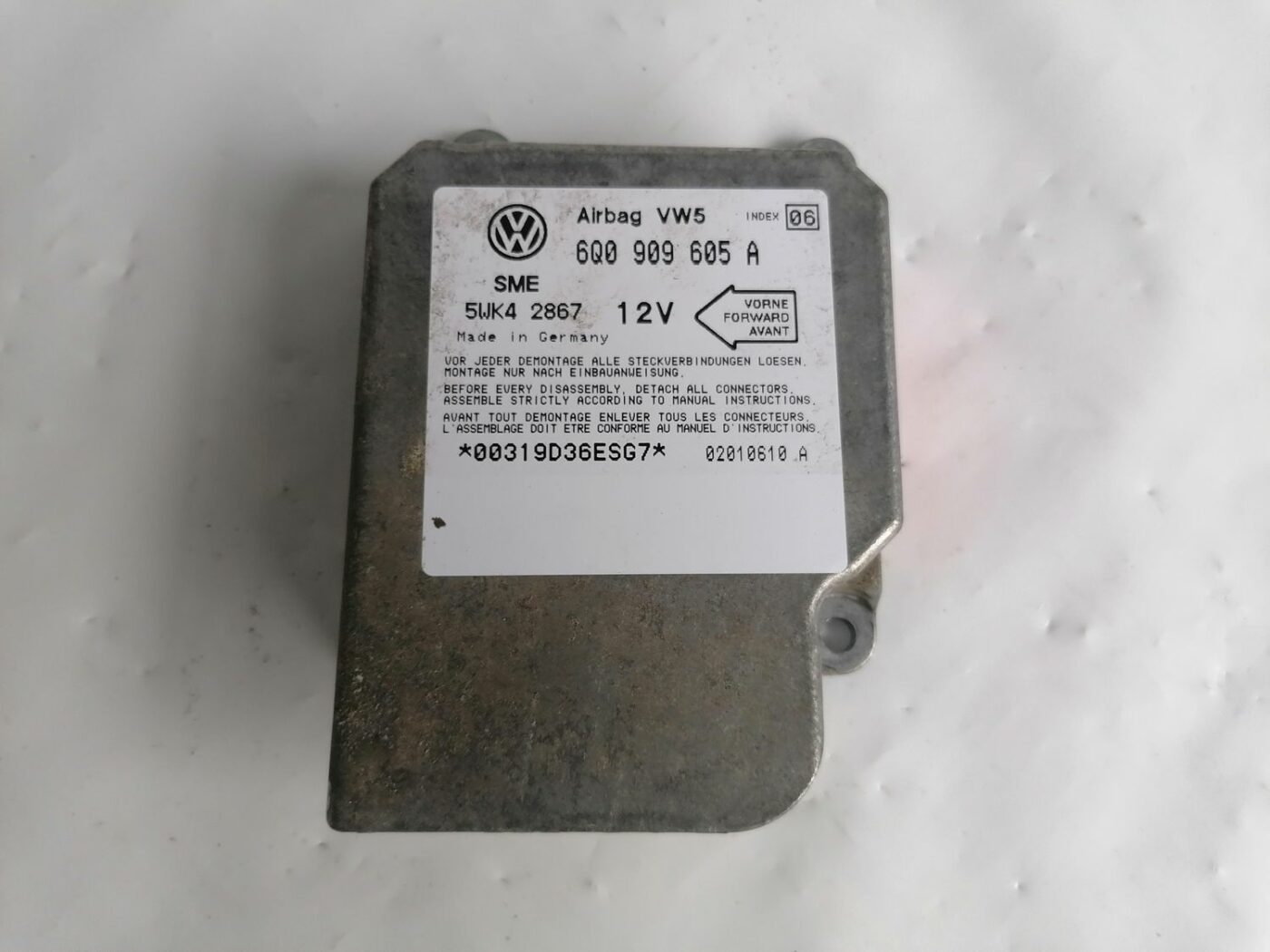 Turvatyynyn ohjausyksikkö varten VW NEW BEETLE 2001 6Q0909605A 02010610A